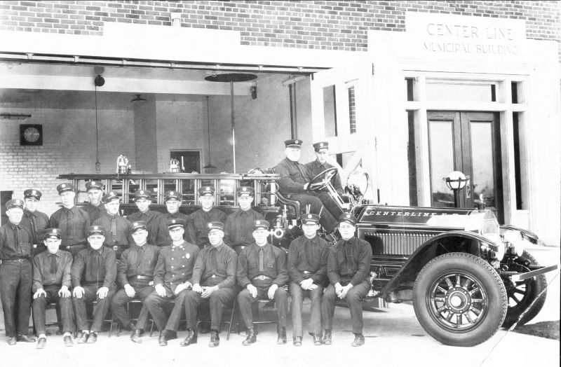 in September of 1927, voters approved a $30,000 bond issue for construction of a municipal building on Ten Mile Road between Wyland and Landau Avenues, just west of Van Dyke Ave., and upon it's completion, the fire department was relocated there. In 1932, the Center Line Fire Department had two chiefs, fully paid, one on each 24 hour shift, plus 16 volunteer fireman (including Clement, Leo, Edward, and Bert Grobbel) who were paid by each call.
