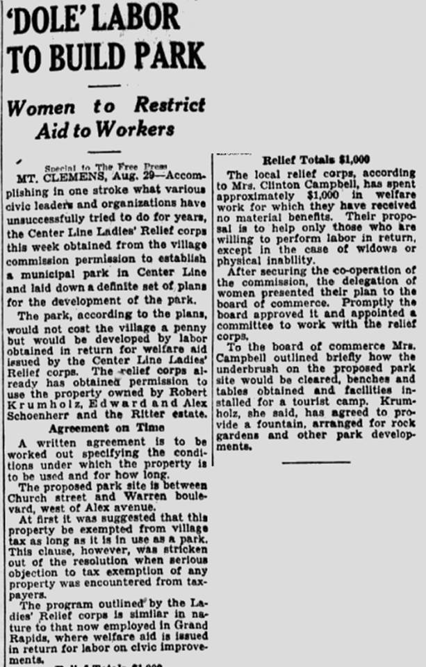 Robert Krumholz was the Center Line Village President in 1931 when he agreed to allow the easterly portion of his property to be used as a Village Park.