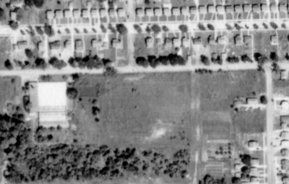 The pond is barely visible in the 1952 aerial photo, just to the right