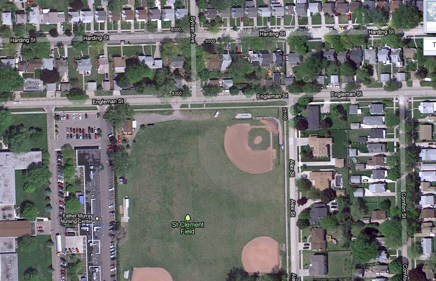 approximately where the St. Clement Field storage building is