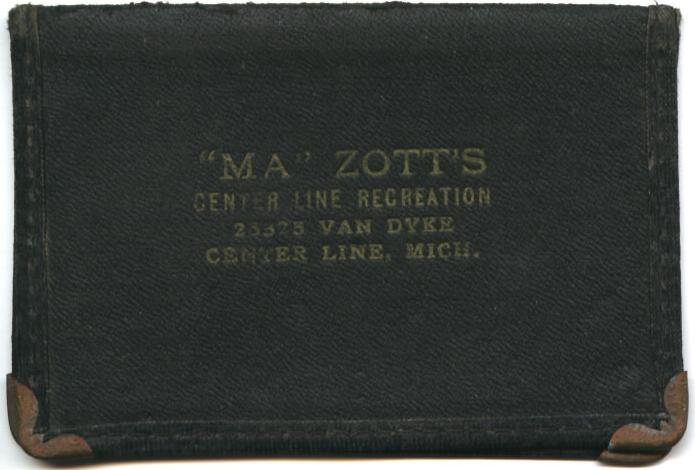 "Ma" Zott was the wife of Joseph Zott and the mother of Nelson, Milton and Josephine. In 1928, Joseph and his wife sold their farm at the southeast corner of 12 Mile Road and Hoover and moved to Center Line, where they built the Center Line Recreation. "Ma" was the proprietor of Center Line Recreation, which consisted of a 10 lane bowling alley plus a bar and grill that was located at 25325 Van Dyke on the west side of the street, midway between Wiegand Blvd. and Engleman Avenue. Four or six of their bowling lanes were purchased used (they had originally been installed in the 3rd floor of St. Clement School) and the remainder were bought new.