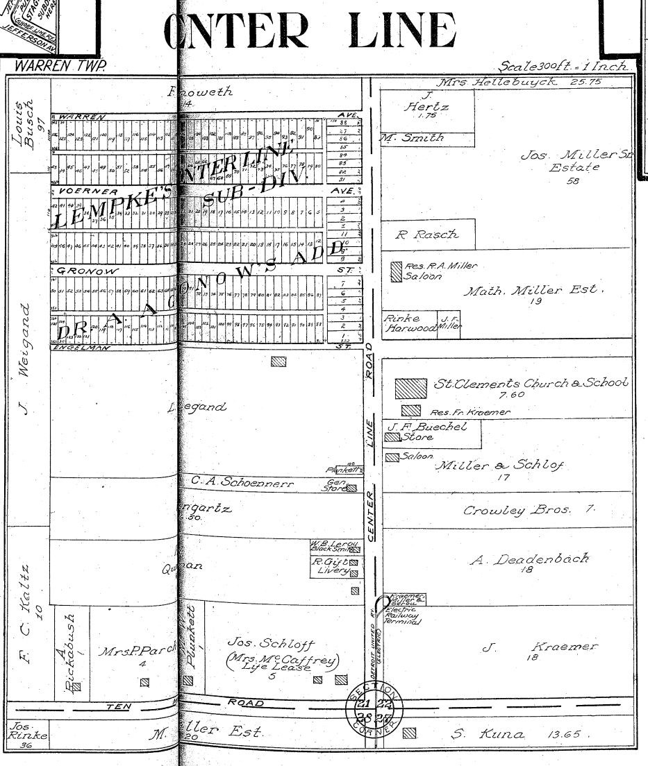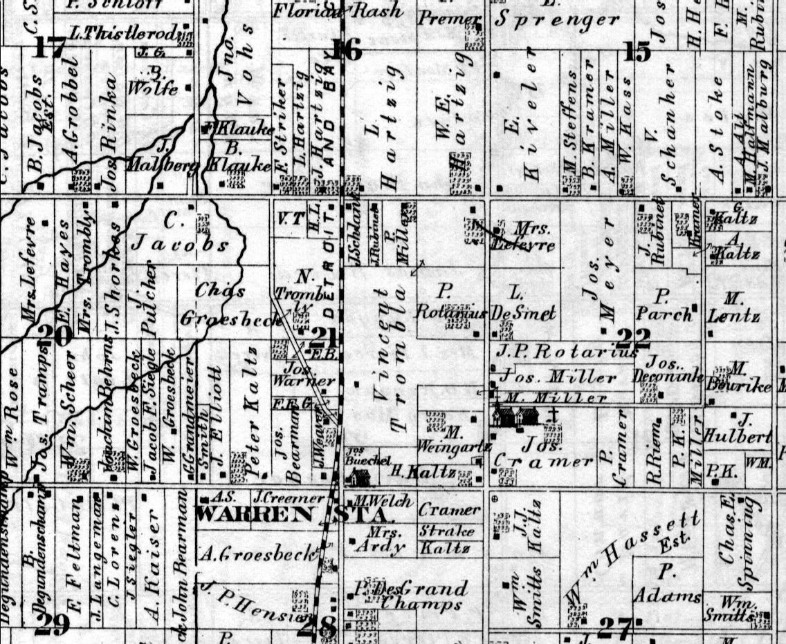 This 1916 map shows the parcel ownership and subdivsion plats on the land either side of Van Dyke and north of Ten Mile Road.