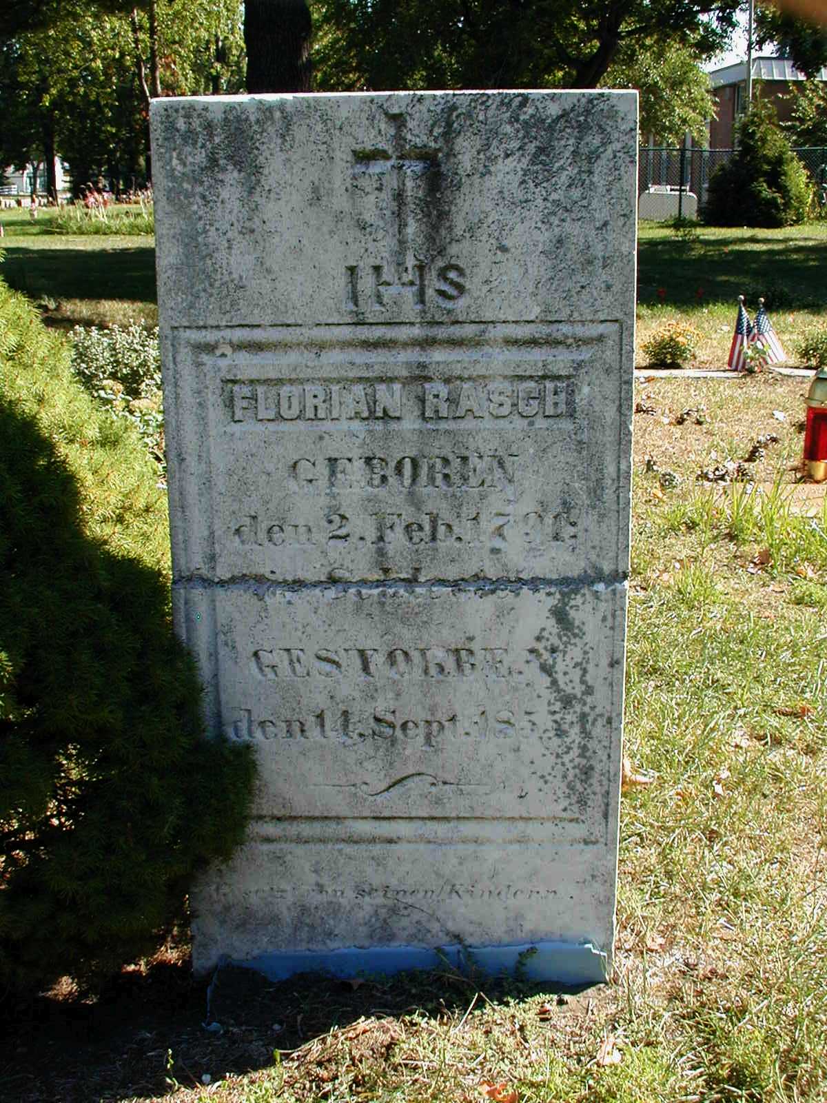 Florian Franz Rasch I, was born on Feb. 2, 1791 (according to his