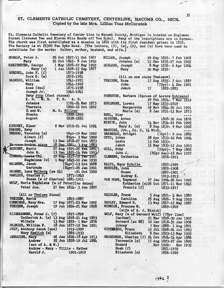 History of St. Clement Parish, Center Line, MI, 1850-2000":